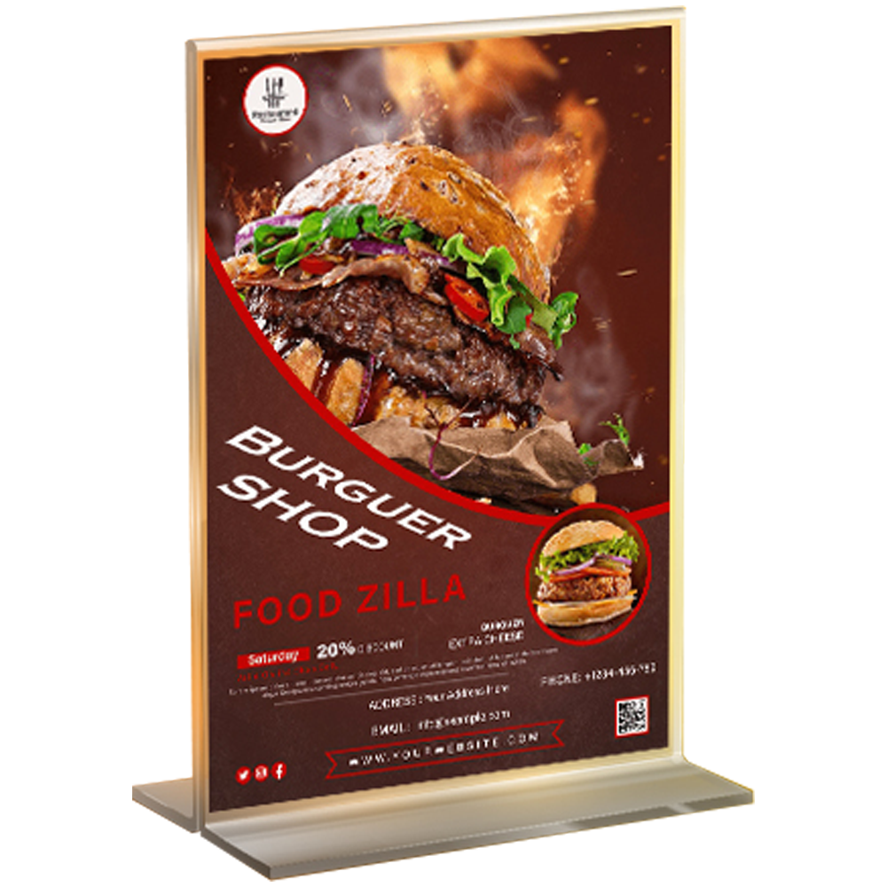 Etias Reklam A4 T Tipi Dikey Masa Üstü Şeffaf Pleksi Föylük / Broşürlük